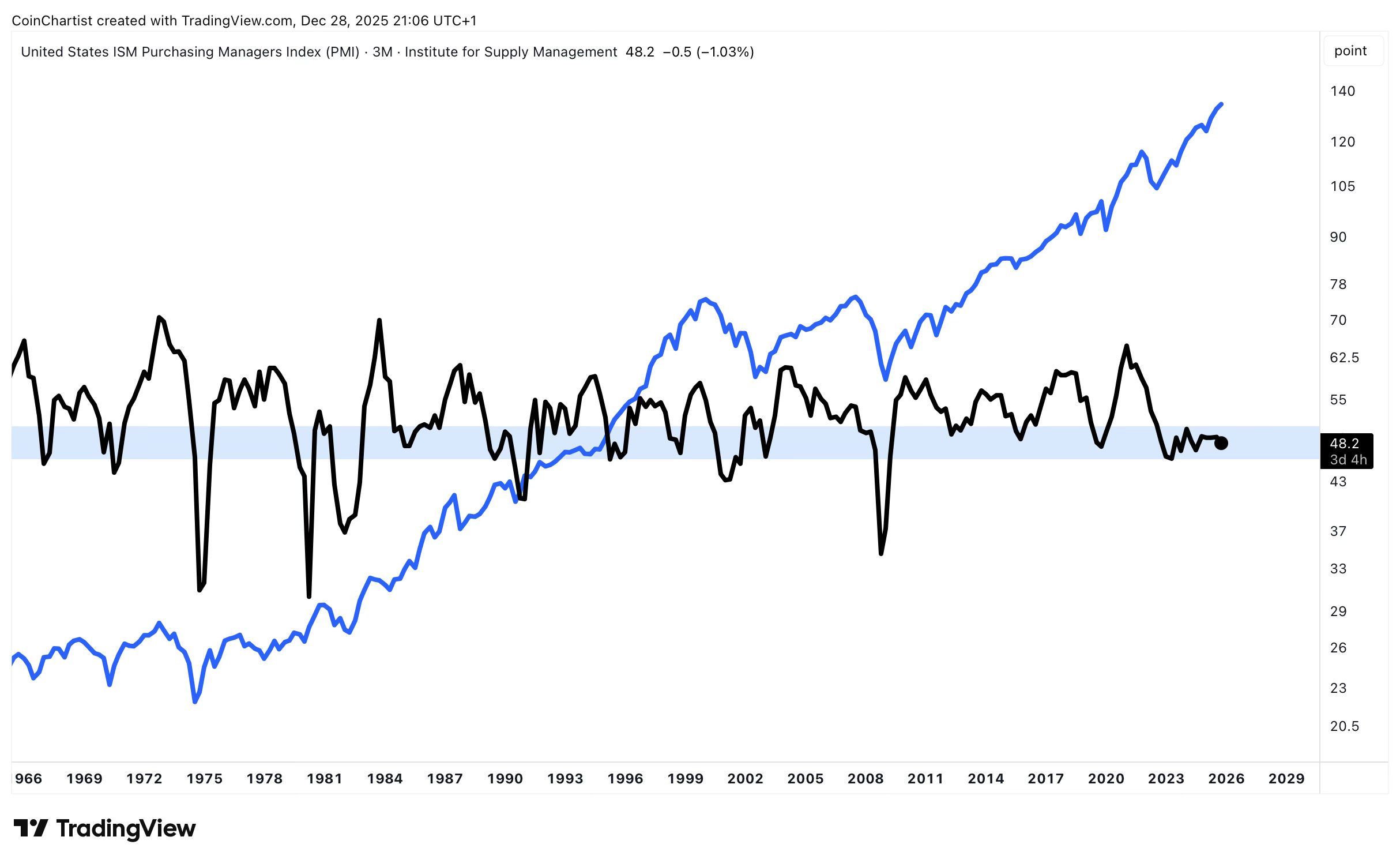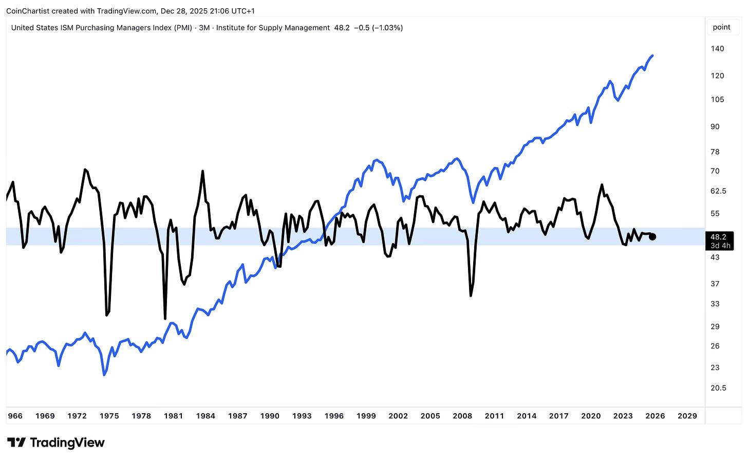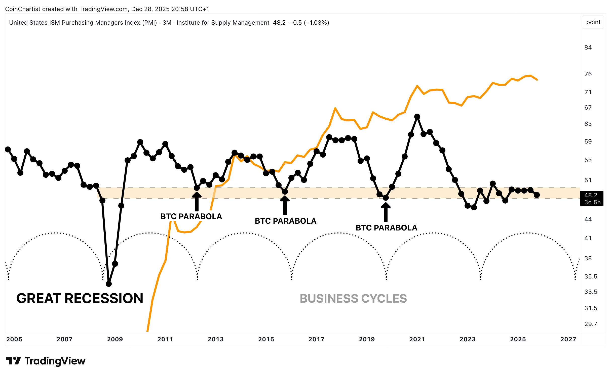 Solid technical breakdown here. The Gold/S&P ratio argument is pretty compelling when you look at past secular shifts lasting 4-12 years. What's interesting is the 16-year cycle stuff because it reframes whats happening as a larger structural shift rather than just another 4-year halving cycle. The section on buisness cycle indicators turning support into resistance felt spot-on too, especially when everyone kept expecting ISM to just bounce back.