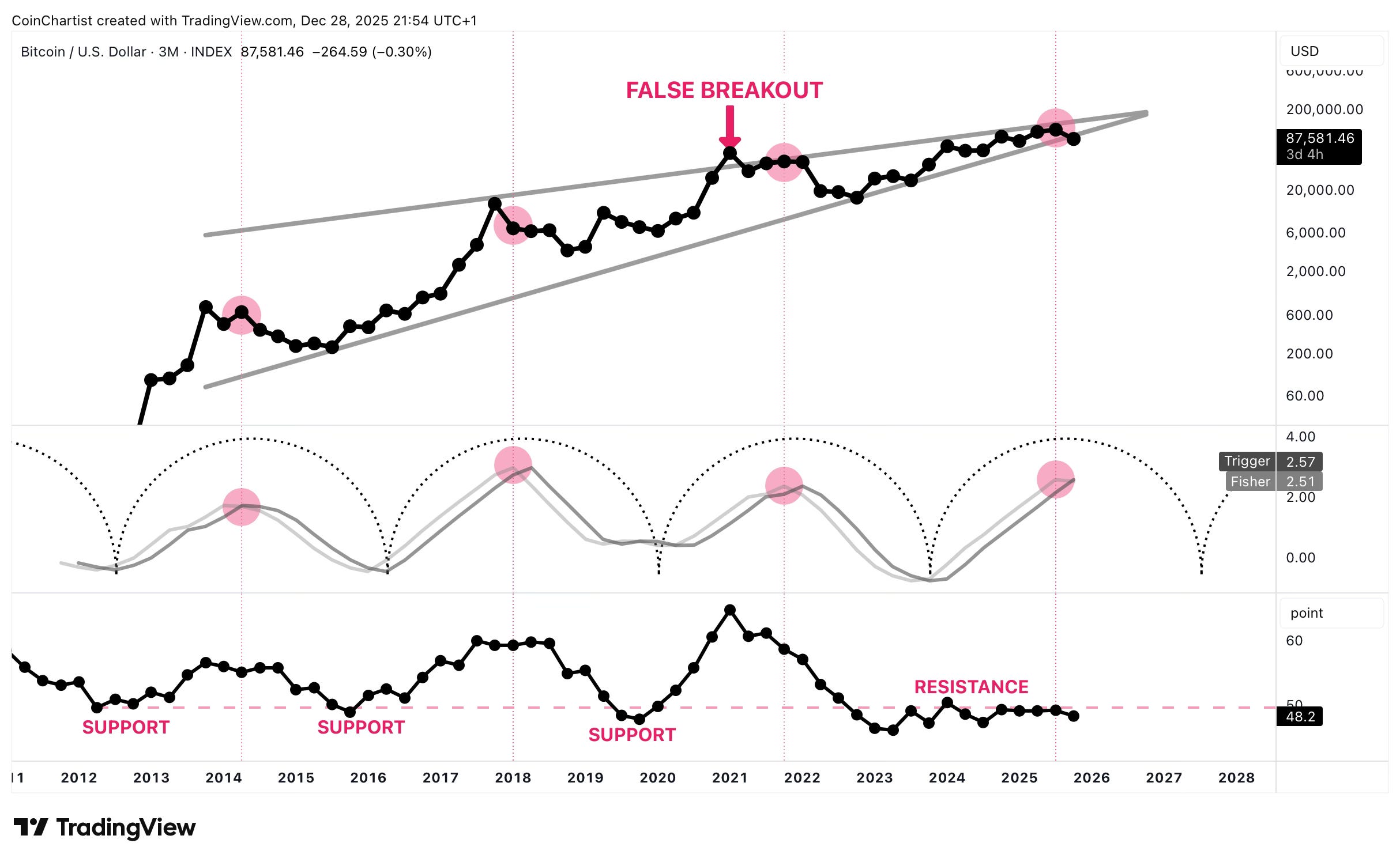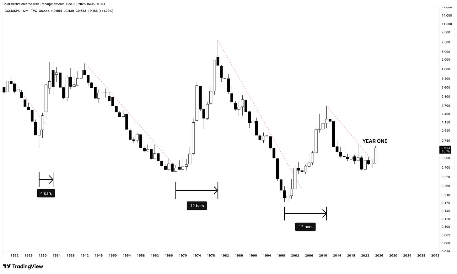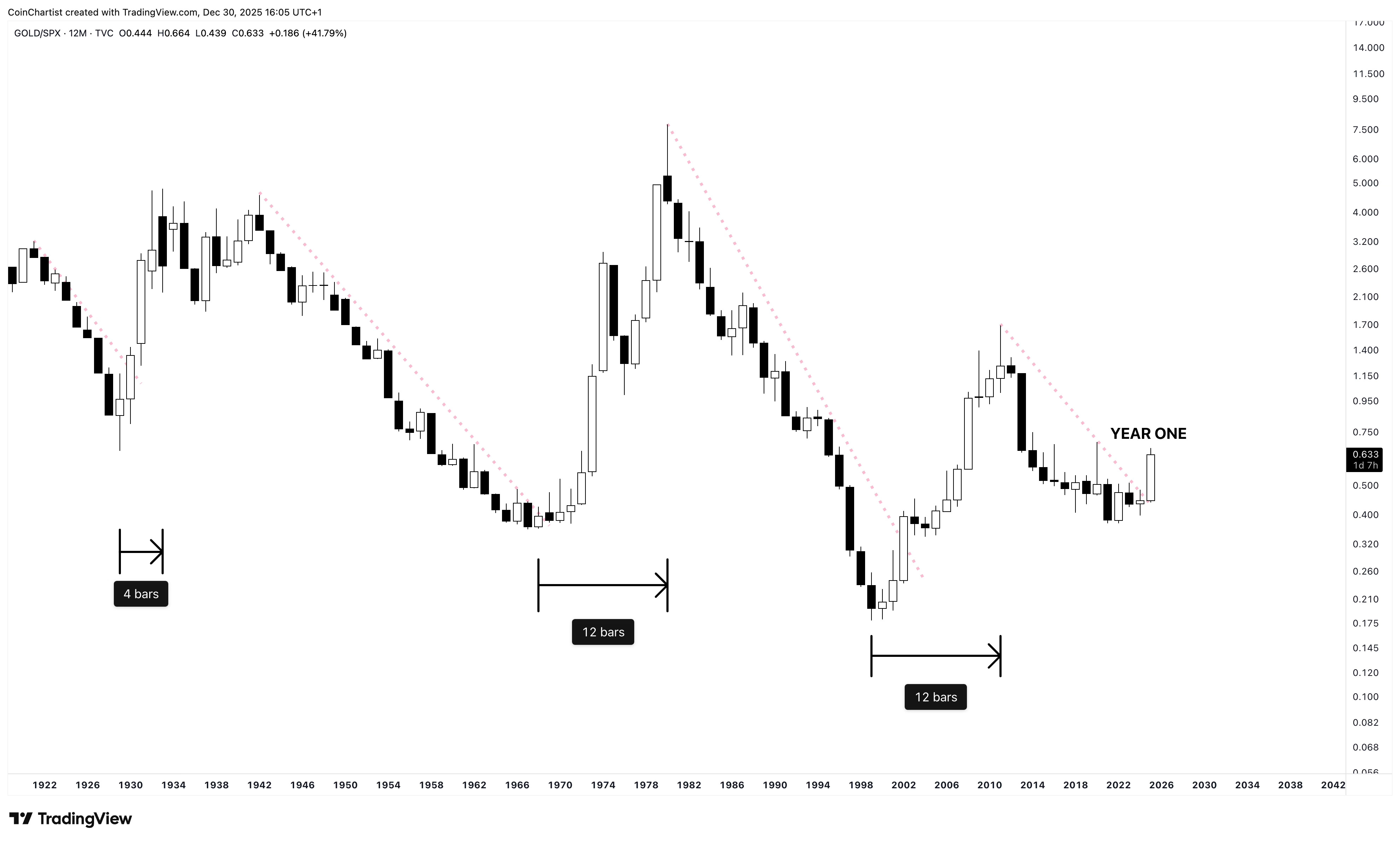Solid technical breakdown here. The Gold/S&P ratio argument is pretty compelling when you look at past secular shifts lasting 4-12 years. What's interesting is the 16-year cycle stuff because it reframes whats happening as a larger structural shift rather than just another 4-year halving cycle. The section on buisness cycle indicators turning support into resistance felt spot-on too, especially when everyone kept expecting ISM to just bounce back.