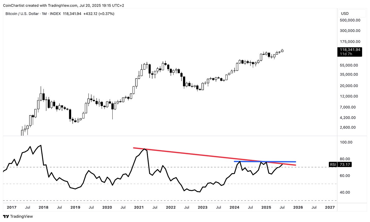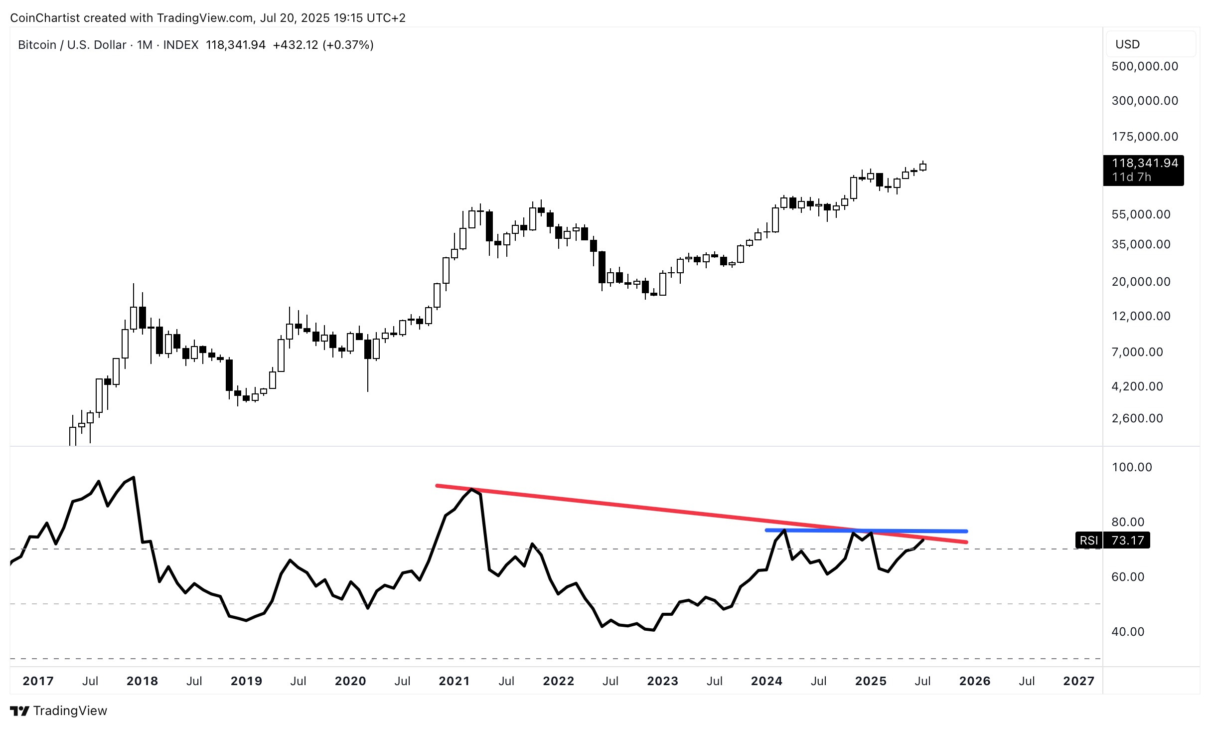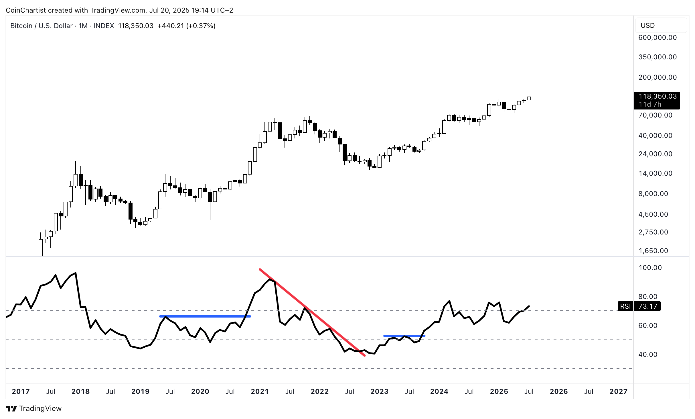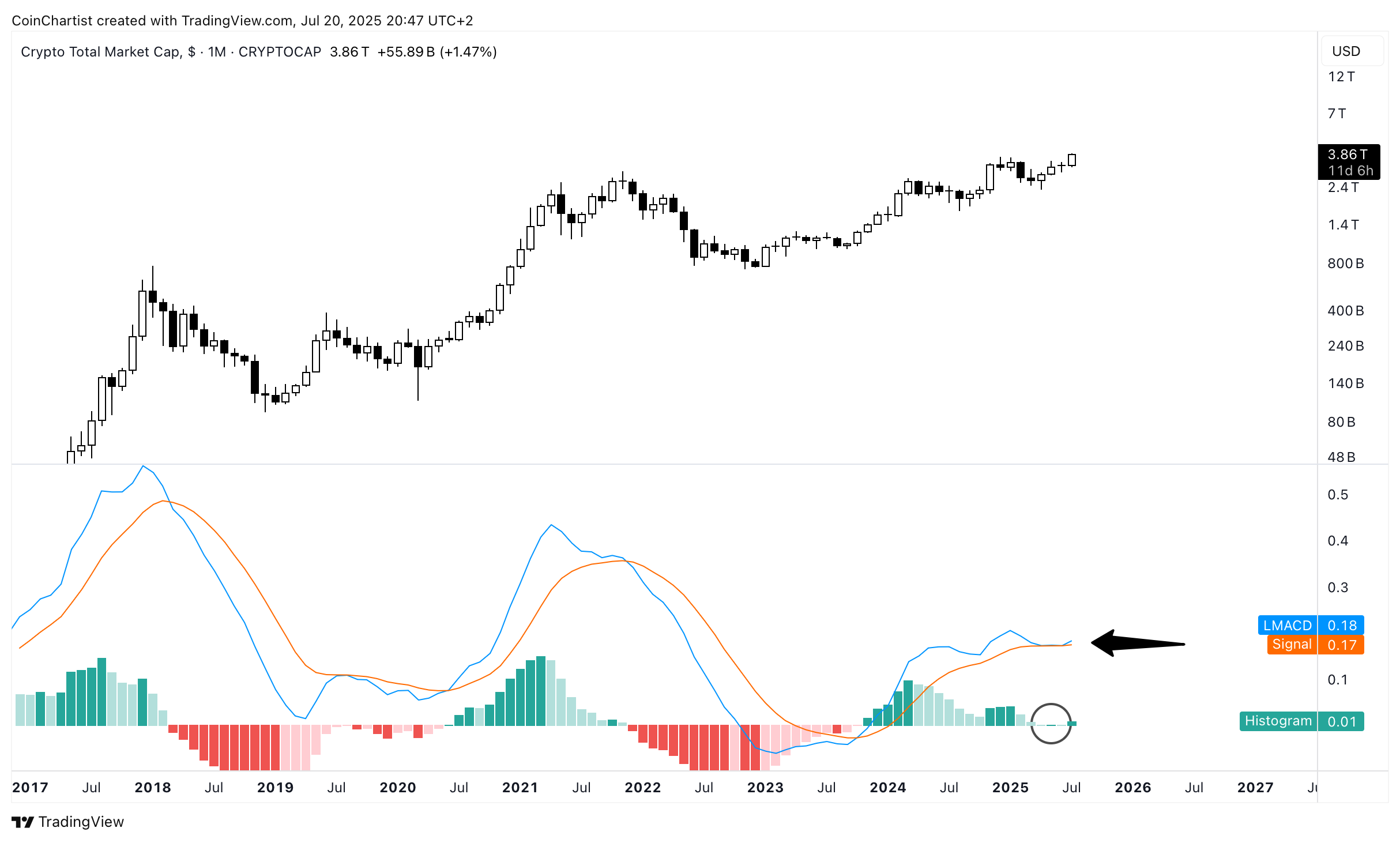 The pro-crypto policy in the United States and global adoption is, without a doubt, making a difference in keeping the market crypto market particularly strong. When Trump took office and pro-crypto policies began to roll out, it initially triggered a 'sell the news' type event. By narrowly avoiding a major bearish momentum signal and defending it for several months, the market is now convincingly bullish.