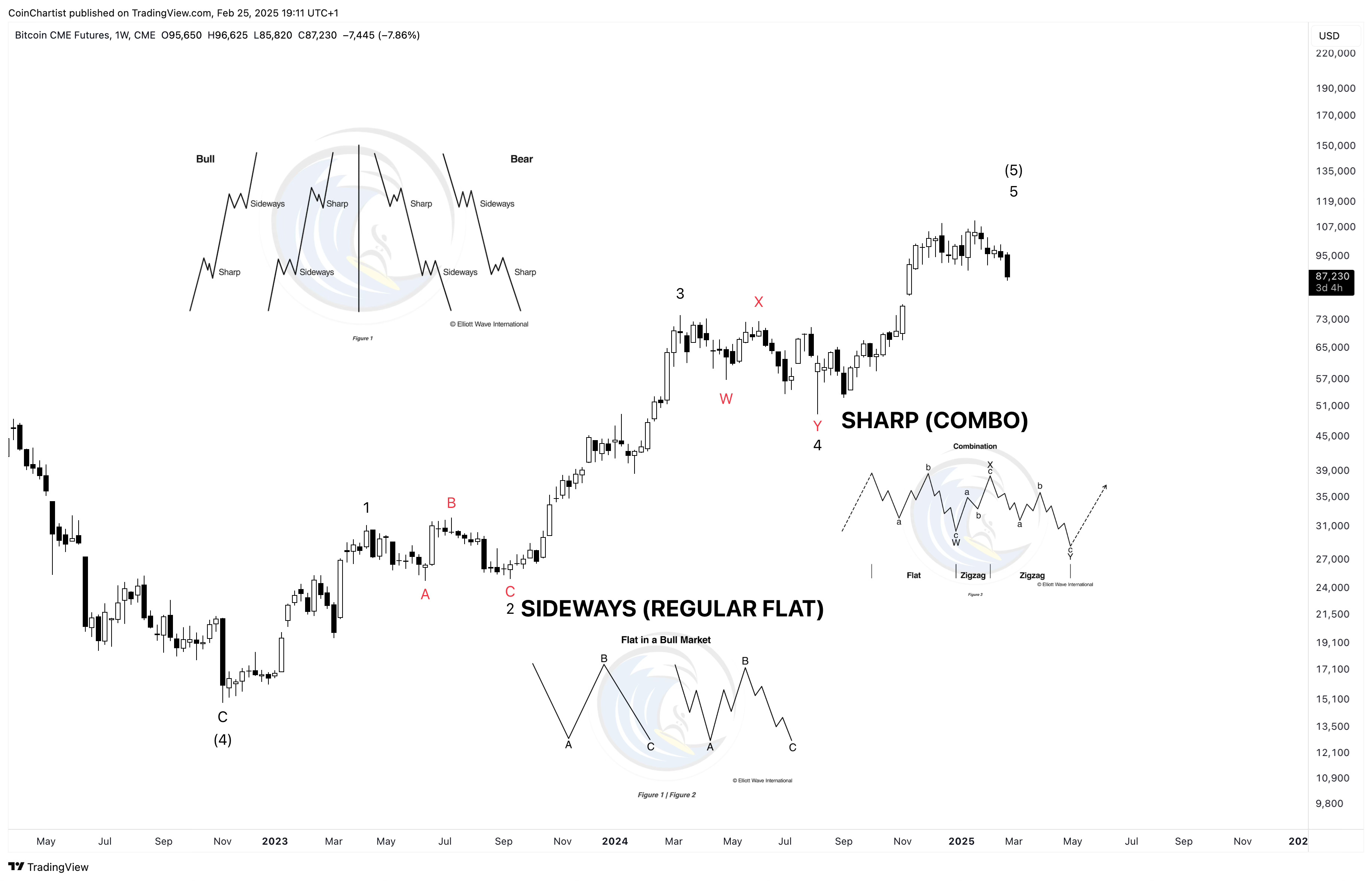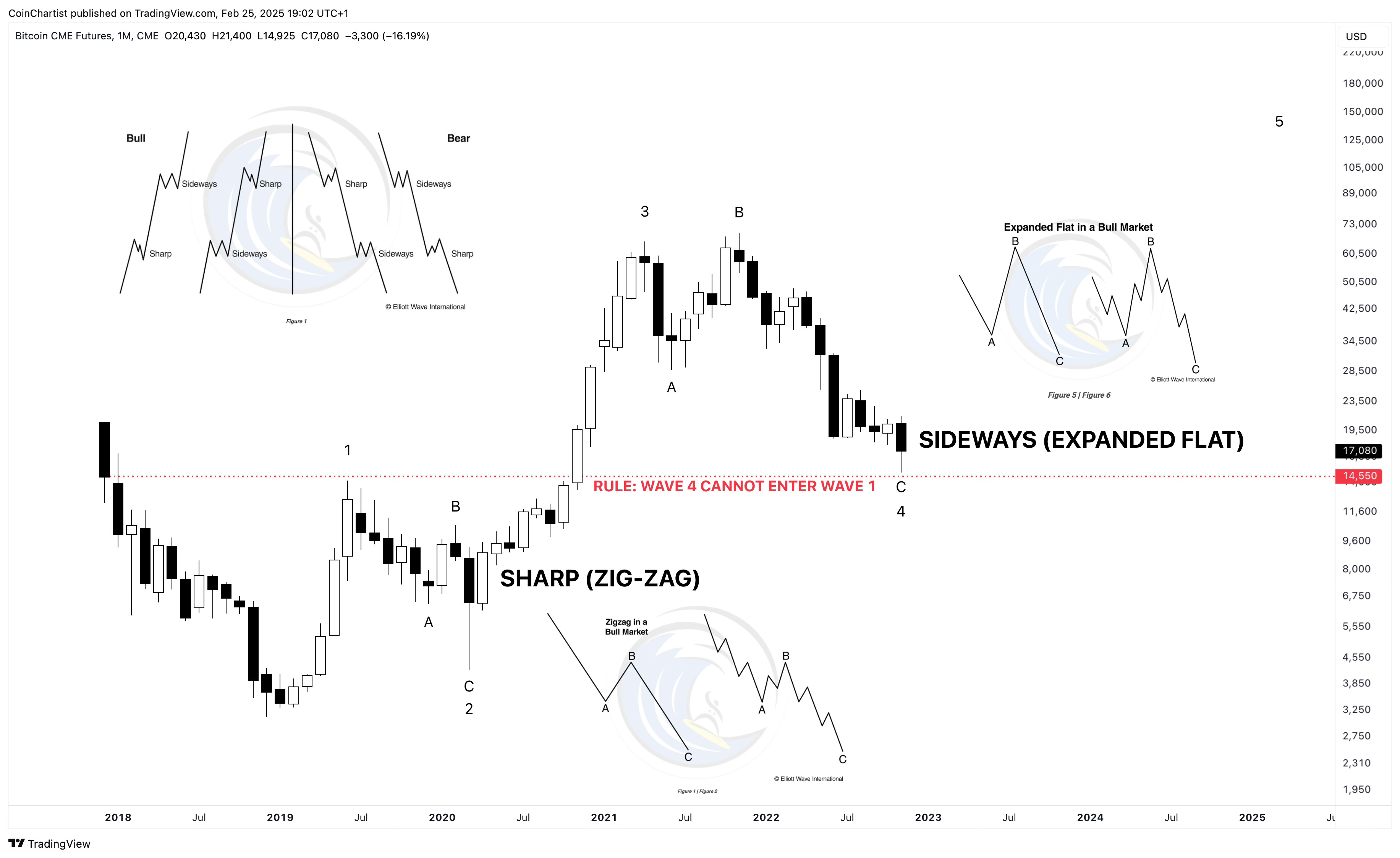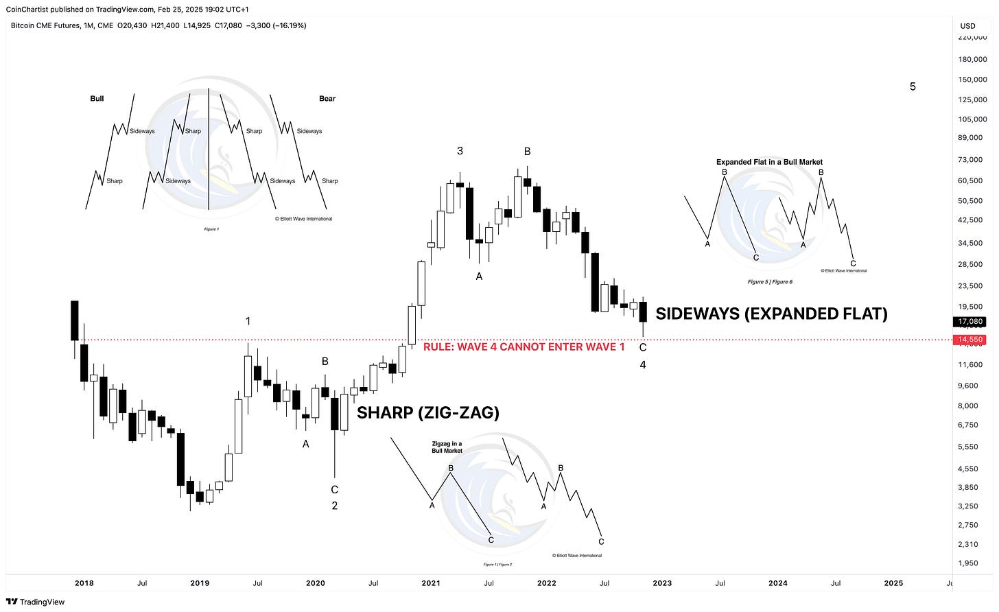 We already used certain rules and guidelines previously to confirm Bitcoin’s primary degree wave count, and we can do the same for the intermediate degree count. Our wave 2 in this case was a sideway flat correction, which alternated with a combo correction with a zig-zag at the end to make it sharp.