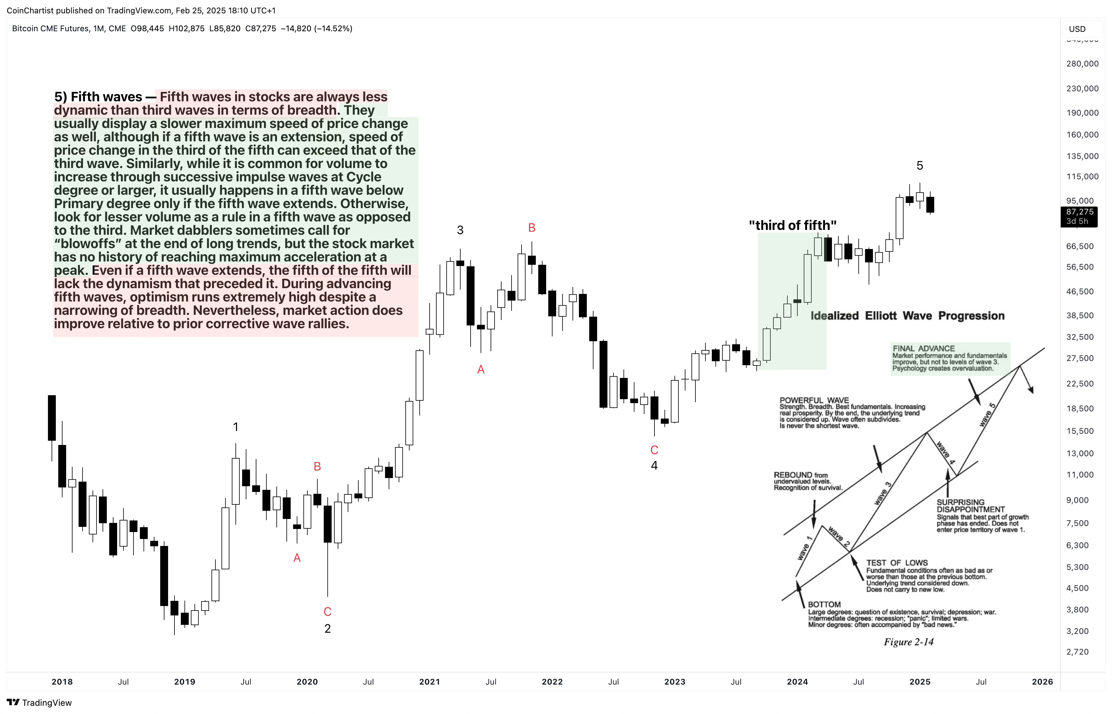 I have felt something was wrong with this market for a couple years now. I got Bitcoin mostly right all along except for how long it would take, but altcoins have been deceptive to chart. Many times they showed buy signals, only to be massively rejected. Perhaps it is the contracting macro conditions associated with a fifth wave that is responsible for the lack of breadth. Whatever the case may be, wave personalities and counts do one hell of a job describing what’s going on in crypto, and Elliott Wave Principle was developed all the way back in the 1930s.