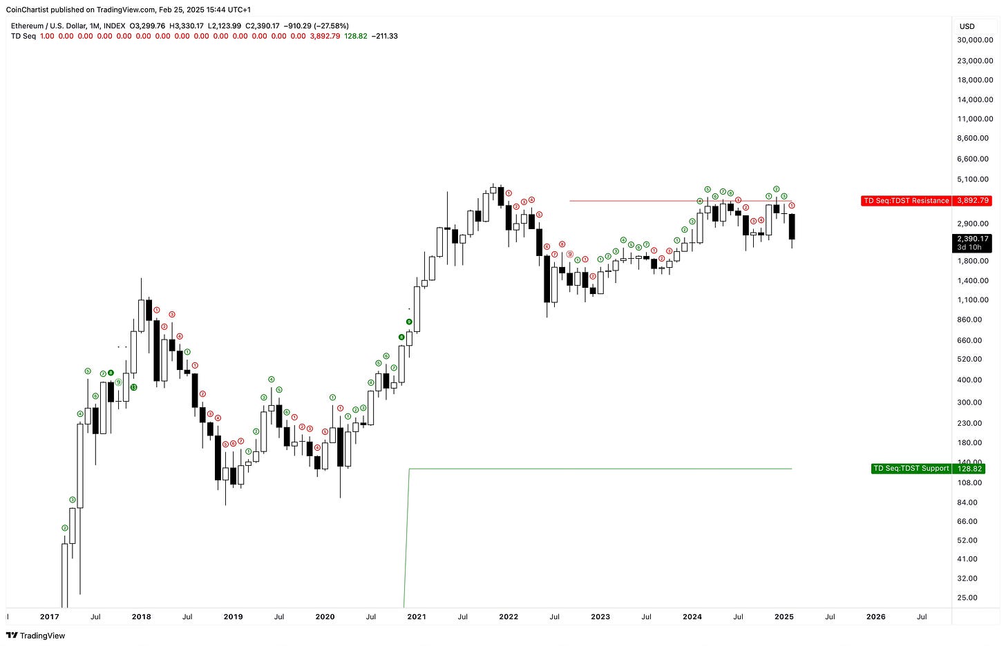An extended look at how bad Ethereum looks from a high timeframe technical perspective