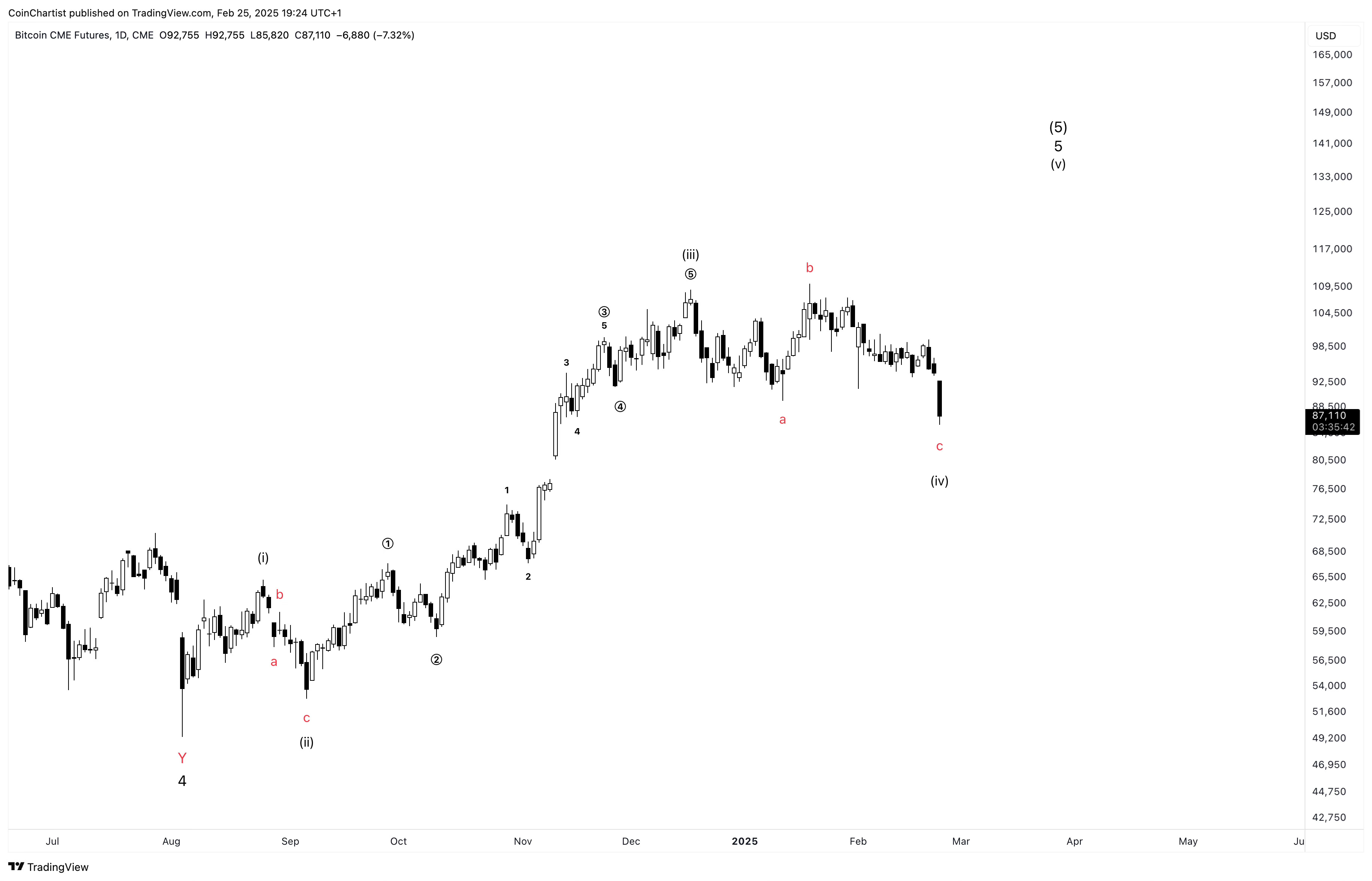 If that’s the case, Bitcoin would have one more subwave v up to go before the top is truly in.